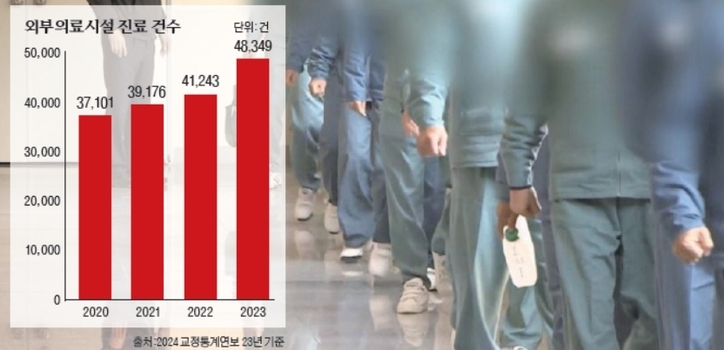 한편, 2023년 교정시설 수용자 중 건강검진을 받은 인원은 총 41,730명이며, 이 중 71.1%인 29,665명이 질환 의심자로 나타났다. 교정시설 내 진료를 받은 수용자는 총 7,448,490명이며, 외부 진료도 꾸준히 증가하여 2023년에는 48,349명이 외부 의료기관을 찾았다. 이에 따른 외부 진료비는 국가 예산 317억 5,200만 원, 수용자 부담금은 42억 3,200만 원이었다.