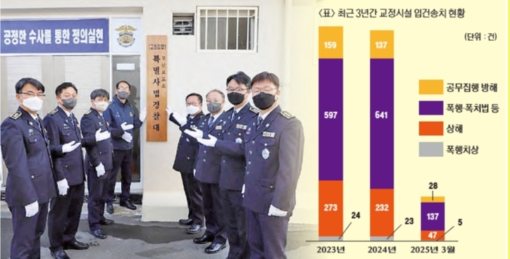 교도소 내 폭행, 사기, 마약 밀반입 등 범죄가 늘면서 교정시설 내부 치안 유지에 빨간불이 켜졌다. 이에 법무부는 ‘광역특별사법경찰팀’을 신설해 대응에 나섰다. 교정시설 내부에서 발생하는 범죄를 전문적으로 수사하고, 수용자 인권과 법질서를 동시에 지키겠다는 목적이다.
