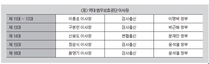 공단의 이 같은 운영 실태는 내부 구조에서 비롯됐다는 비판도 제기된다. 법무복지공단 이사장직은 이명박 정부 이후 줄곧 검찰 출신 인사들이 독점해왔다.