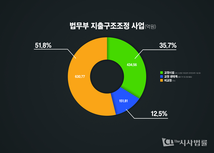 여기에 법률구조 등 교정 생태계 간접 관련 항목의 감액(151억 8100만원)을 포함하면 586억 3700만원으로 집계돼 전체 구조조정 감액의 약 50%가 교정행정에서 발생한 것으로 드러났다.