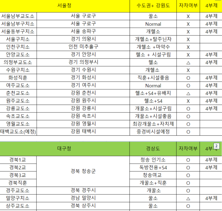 교정시설별 근무 강도를 두고 일명 ‘꿀소’, ‘헬소’ 등으로 나눈 분류표가 온라인에서 공유돼 화제를 모았다.