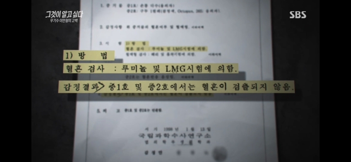 또 ‘그것이 알고싶다’ 측은 당시 이씨의 손톱에서 혈흔이 검출되지 않았던 점을 확인하기 위해, 이씨의 진술에 따라 당시 국과수가 했던 방법과 유사하게 69시간 뒤 혈흔 검사를 진행했다.