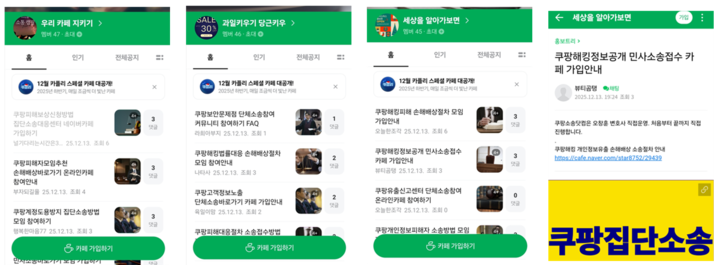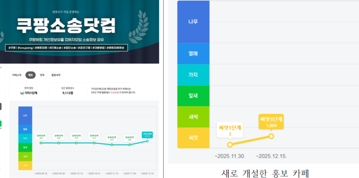 30일 본지 취재에 따르면, 옥바라지 카페 매니저로 활동하는 A 변호사는 지난해 12월 초, 유령 회원 약 3만 명이 남아 있던 비활성화 네이버 카페의 명칭을 ‘쿠팡소송닷컴’으로 변경하고, 쿠팡 개인정보 유출 사건과 관련한 집단소송 참여자 모집을 시작했다.