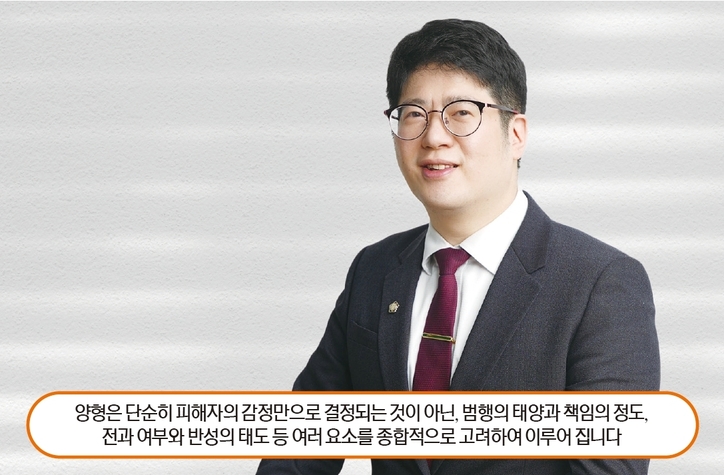 결국 법원은 피해자의 진술을 하나의 판단 요소로 삼되, 사건 전반의 정황과 증거를 토대로 그 진술의 신빙성과 비중을 판단합니다. 양형은 단순히 피해자의 감정만으로 결정되는 것이 아니라, 범행의 태양과 책임의 정도, 전과 여부, 반성의 태도 등 여러 요소를 종합적으로 고려하여 이루어진다는 점을 이해할 필요가 있습니다.