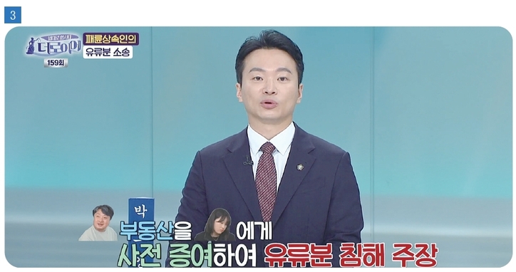 PD: 그리고 조사를 해보니 일원씨가 생전에 딸에게 땅과 건물을 증여한 사실이 있었습니다. 현재 시가가 약 10억원이라고 하는데요. 오빠가 유류분 소송을 걸어올 경우 이 재산을 뺏길 우려가 있다는 거죠.