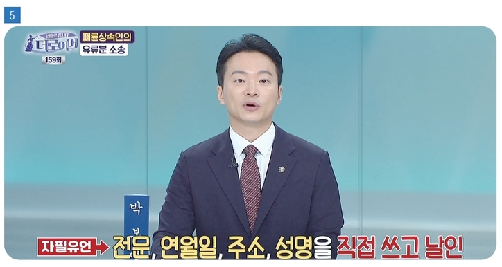 박변: 자필증서유언은 전문, 연월일, 주소, 성명, 날인을 모두 갖춰야 합니다. 단순히 재산을 준다는 취지의 메모만으로는 법이 정한 형식을 충족했다고 보기 어렵습니다. 그래서 결국 유류분 다툼으로 이어질 수밖에 없는 상황이었습니다.
