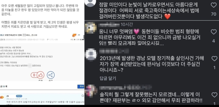 일부 게시물에서는 “평범한 또래 여성처럼 보인다”거나 “외모가 좋다”는 식의 표현이 등장하며 가해자를 두둔하는 분위기도 형성된 바 있다.