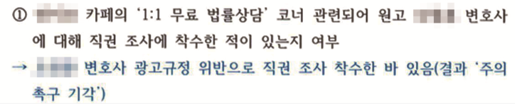 변협은 “네이버 카페 메인 메뉴에 피신청인을 명시하고 법률 상담 서비스를 제공한 행위가 변호사 광고 규정을 위반했을 가능성이 있다”며 직권조사를 시작했다. 또 조사 과정에서 해당 카페의 운영 방식 자체에도 문제의 소지가 있다고 판단했다.