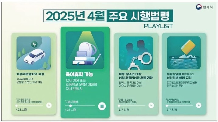 4월부터 아동과 청소년을 대상으로 한 성적 허위 영상물과 관련해 처벌이 강화된다. 또 육아 휴학을 신청할 수 있는 대상 자녀의 나이가 확대된다. 법제처는 이러한 내용을 포함한 총 97개 법령이 내달 시행된다고 31일 밝혔다.