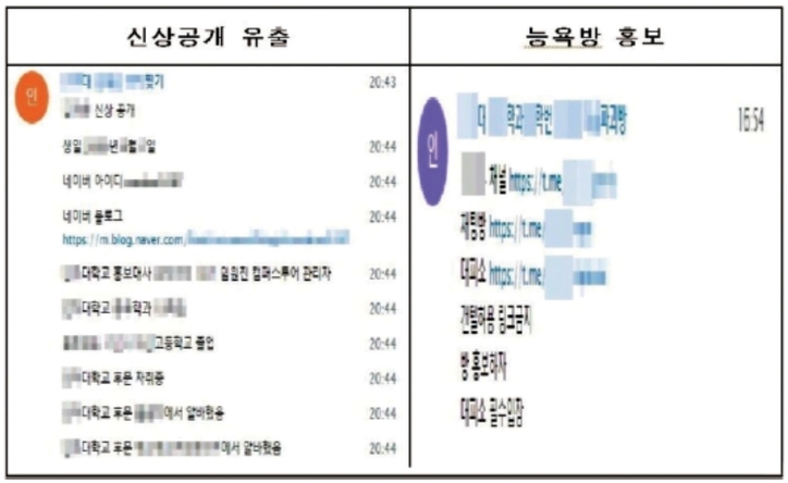 개설자가 초대 링크를 외부에 공유하면 불특정 다수가 유입되는 구조였고, 대화방 이름에는 특정 대학명과 피해자 실명을 조합한 표현이 사용된 것으로 파악됐다.