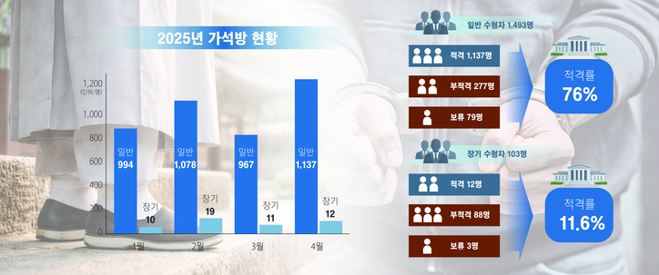 반면 부적격 판정은 총 365명으로 일반 수형자 277명, 장기 수형자 88명이었으며 일반 수형자 79명과 장기 수형자 3명 등 82명은 심사보류 결정이 내려졌다.