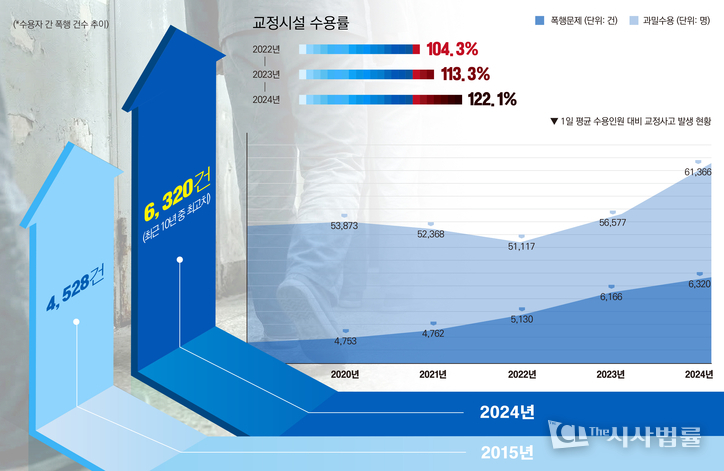 전문가들은 이러한 폭행 증가의 원인으로 과밀수용 문제를 지목한다. 교정시설 수용률은 2022년 104.3%, 2023년 113.3%, 지난해 122.1%로 매년 상승했다. 정원은 5만 250명이었지만 실제 수용 인원은 6만 1366명에 달했다.