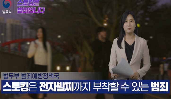 법무부가 스토킹 범죄의 심각성을 알리기 위한 예방 영상을 제작해 16일부터 전국에 송출한다.