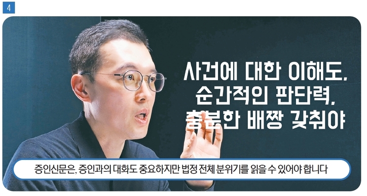 곽변: 증인신문은 단순한 질문과 답변의 절차를 넘어, 사실관계를 형성하는 중요한 과정입니다. 이 과정에서 어떤 진술이 어떻게 형성되고 평가되는지는 재판 결과에 직접적인 영향을 미칠 수 있습니다. 형사 재판에서는 증거와 절차가 유기적으로 작용하는 만큼, 각 절차의 의미와 구조를 이해하는 것이 중요합니다.