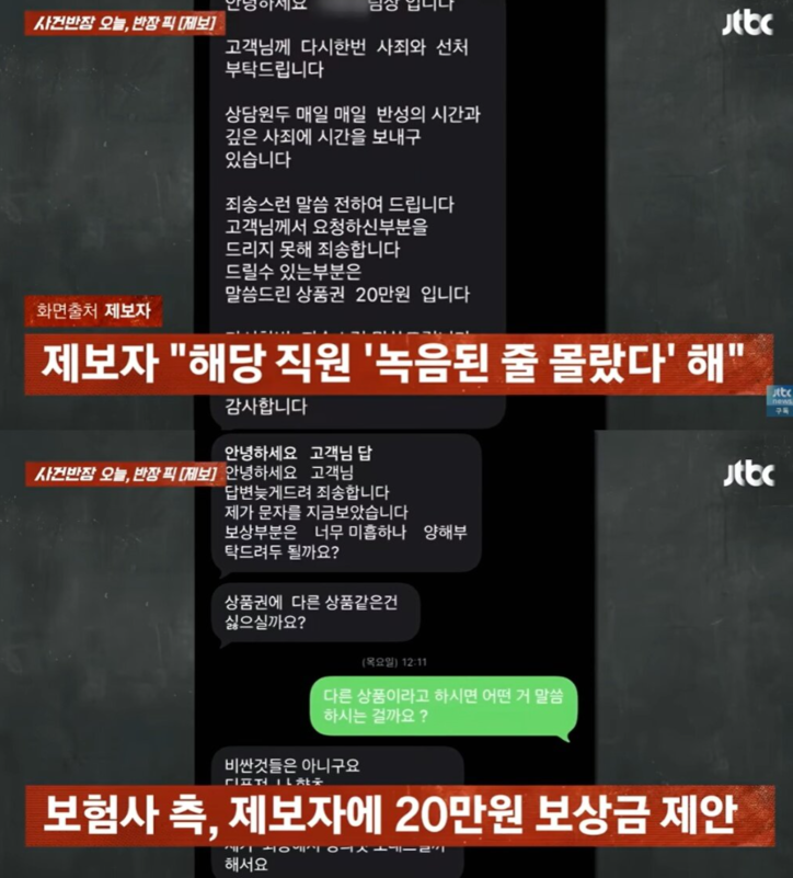 A 씨는 보험회사 측에 항의했고, 관계자는 여러 차례 사과의 뜻을 전했다. 그러나 보험설계사는 "녹음이 됐나요?"라는 반응만 보일 뿐 별다른 반응이 없었다.
