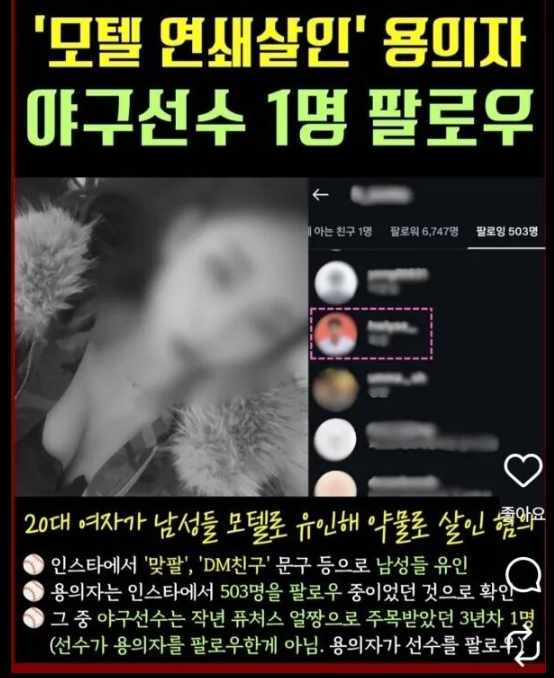 또 김씨가 프로야구 퓨처스리그에서 외모로 주목받았던 선수를 팔로우한 사실도 알려졌다. 해당 선수는 온라인에서 ‘고양 강동원’이라는 별칭으로 불리며 주목을 받아왔다.