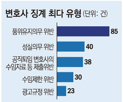 2019년부터 2024년까지 대한변호사협회 징계위원회의 처벌 중 81%가 과태료나 견책 같은 경징계에 그쳤다. 판결문 위조나 공탁금 횡령 같은 심각한 사건에도 솜방망이 처벌이 이어져 피해자는 손해를 떠안고 불량 변호사는 활동을 재개하는 상황이 반복되고 있다. 한 피해자는 “과태료 내고 다시 일한다는 게 말이 되느냐”고 분노했다.