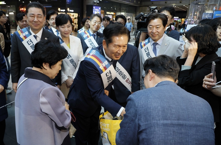 정청래 민주당 대표는 이날 오전 김병기 원내대표, 전현희·한준호·김병주 최고위원 등 당 지도부와 함께 서울 용산역을 찾아 귀성객들을 만났다. ‘더불어 풍요로운 한가위’라는 문구가 적힌 어깨띠를 두른 지도부는 기차에 오르는 시민들과 인사를 나누며 안전한 귀향길을 당부했다.