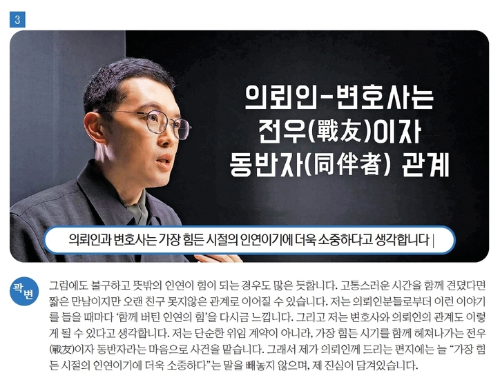 [법무법인 청] 가장 힘들 때 만난 인연, 의뢰인과 변호인은 전우이자 동반자 관계