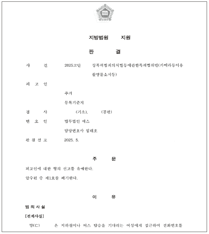 저희의 경우 카메라등이용촬영죄, 불법촬영물소지죄, 아동성착취물소지와 같은 디지털 성범죄는 물론 아동성매수와 같은 중한 성범죄 사건들에 대하여도 선고유예 판결을 받은 사례가 있습니다.