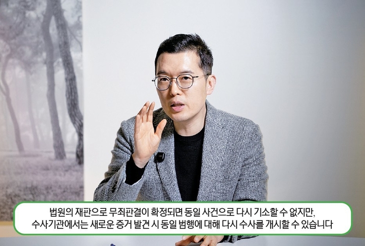 이런 경우 ‘이미 끝난 사건인데 어떻게 재수사가 가능하지?’라는 의문이 들 수밖에 없는데요. 이는 수사에서의 ‘혐의없음’과 재판에서의 ‘무죄 판결’의 의미가 법적으로 다르기 때문입니다. 먼저, 법원에서 재판을 받아 무죄 판결이 확정된 경우라면 동일한 사건으로 다시 기소하거나 처벌할 수 없습니다.