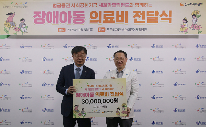 신용회복위원회는 푸르메재단 넥슨어린이재활병원을 방문해 저소득 가정 장애아동 19명에게 총 3000만원의 의료비를 전달했다고 7일 밝혔다.