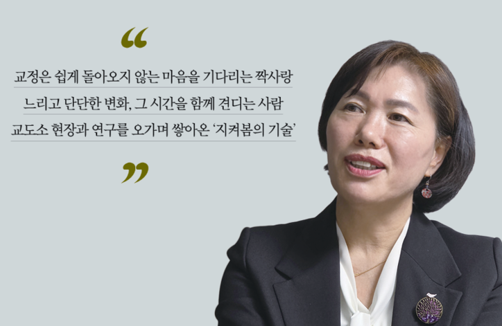 30년 넘게 교정 현장을 지켜온 장선숙 교도관은 스스로를 “수용자를 끝까지 바라봐 주는 사람”이라고 말한다. 법학과 직업학을 공부하며 수용자의 재사회화를 돕고, 때로는 교도관 조직의 직무 환경까지 연구해 온 그는 교정을 “쉽게 돌아오지 않는 마음을 오래 견디는 일”, 즉 ‘짝사랑’에 비유한다. 재범의 현실 속에서도 변화의 가능성을 놓지 않고, 오늘도 한 사람의 삶을 붙잡기 위해 묵묵히 현장을 지키는 장 교도관에게 교정의 의미와 수용자에게 전하고 싶은 이야기를 들어봤다.