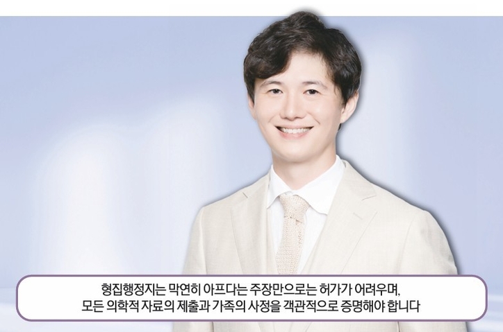 Q1. 안녕하세요. 변호사님, 혹시 몸이 너무 아프거나 가족에 위중한 상황이 생겼을 때 형집행정지를 받을 수 있을까요?