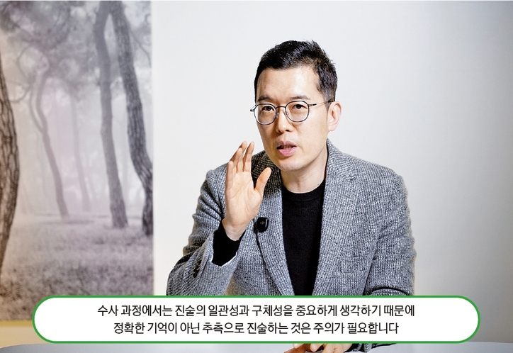 수사 과정에서는 조서에 기재된 진술의 일관성과 구체성을 중요하게 보기 때문에 초기의 진술 내용이 이후 사실과 다르다는 점이 드러날 경우, 진술 전체의 신빙성까지 문제 될 수 있기 때문입니다. 따라서 잘 기억나지 않는 부분을 추측으로 진술하는 것은 정말 주의하셔야 합니다.