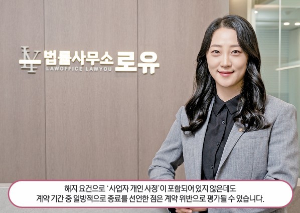 계약의 목적이 ‘사업주의 신용 자체’ 에만 있는 계약이라면 이야기가 다르겠지만, 공급계약이라면 보통 계약의 본질은 ‘계약된 물품을 납품받는 것’ 이기 때문입니다. 이에 공급가격·납품수량·대금지급일이 모두 정해진 정식 계약이 존재하고, 해지 요건으로 ‘사업자 개인 사정’이 포함되어 있지 않은데도 계약 기간 중 일방적으로 종료를 선언한 점은 계약 위반(채무불이 행 또는 불법해지)으로 평가될 수 있습니다.
