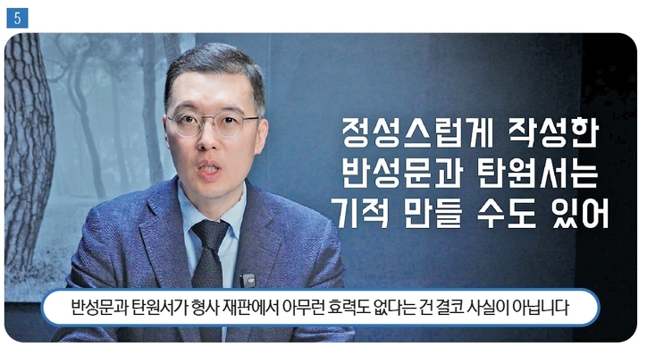 곽변: 안녕하세요, 법무법인 청 곽준호 대표 변호사입니다. 오늘은 독자분들과 ‘반성문’ 작성하는 방법에 관해 이야기를 나눠보고자 합니다. 형사 재판을 앞둔 분 중에 반성문 안 쓰는 사람 찾기는 어렵습니다. 누구나 내는 것이다 보니 “낸다고 해서 감형으로 이어지냐, 굳이 안 내도 되지 않냐”라고 말씀하시는 분도 가끔 있는데요. 저는 항상 그런 태도만큼 위험한 건 없다고 조언을 드립니다. 바꿔서 생각해 보시기 바랍니다. 모든 피고인이 정성 들여 반성문을 작성하는데, 어떤 피고인만 반성문을 내지 않는다면 재판부 입장에서 어떻게 보일지를요. ‘남들이 하는 건 기본적으로 다 챙긴다’는 마음가짐이 필요합니다.