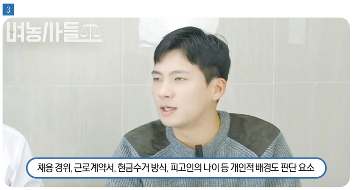 조변: 대법원이 제시한 기준을 보면 정말 세세해요. 채용 경위가 정상적인지, 근로계약서가 작성됐는지, 현금수거 방법이 통상적인지, 피해자에게 어떻게 행동했는지, 제3자 명의를 사용했는지 등을 모두 보라고 했어요. 피고인의 나이, 경력, 사회 경험 같은 개인적 배경도 중요한 판단 요소가 됐고요.