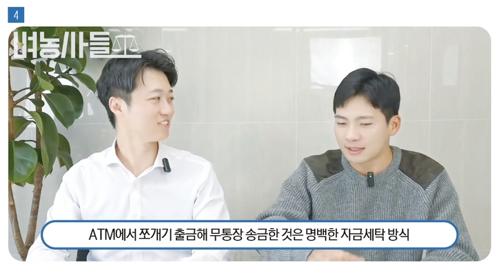 조변: 돈 처리 방식이 결정적이었어요. 받은 현금을 ATM에서 100만원씩 쪼개서 피고인이 전혀 모르는 타인의 명의로 무통장 송금했거든요. 이건 명백한 자금세탁 방식이에요. 피해자를 만나기 직전에서야 인상착의를 전달받는 것도 정상적인 업무가 아니고요.