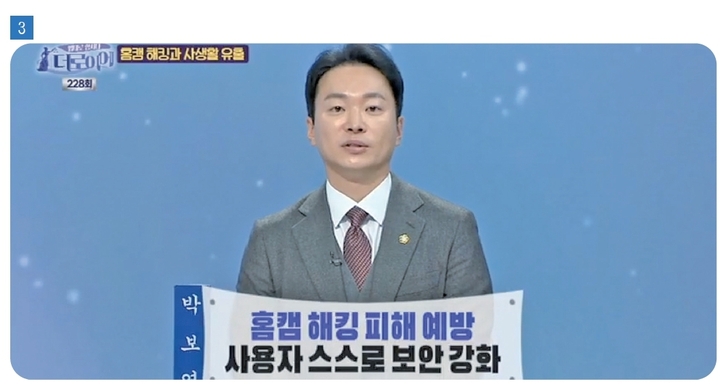 박변: 새 제품을 구매하면 반드시 기본 비밀번호에서 복잡한 비밀번호로 변경해야 하고요. 주기적인 보안패치를 통해 펌웨어를 업데이트해야 합니다. 그리고 너무 가성비만 따져서 제조사 정보가 정확하지 않은 제품을 구매하는 것은 가급적 피하고, 보안 관련 인증을 받은 제품을 구매하는 것이 좋겠습니다. 또 외부 네트워크에서 접속하는 것이 보안을 가장 취약하게 만드는 원인이므로, 사용할 때를 제외하고서는 비활성화시키고 사용할 때만 네트워크를 활성화해야 합니다.