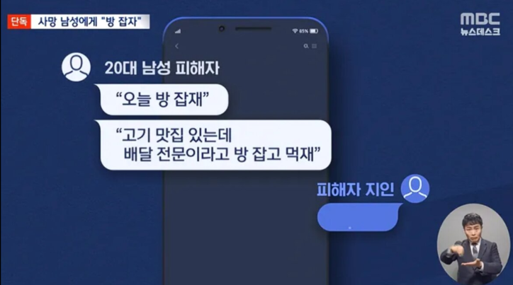 공개된 메신저 대화에서 A씨는 지인에게 “오늘 방 잡재”, “고기 맛집이 있는데 배달 전문이라고 방 잡고 먹재”라는 메시지를 보낸 것으로 확인됐다.