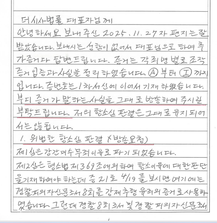 정씨는 자신의 사건이 과거 재심이 인정된 사례들과 유사하다고도 주장했다. 그는 ‘청산가리 막걸리 사건’과 ‘김신혜 사건’을 언급하며 절차적 위법성을 강조했다.