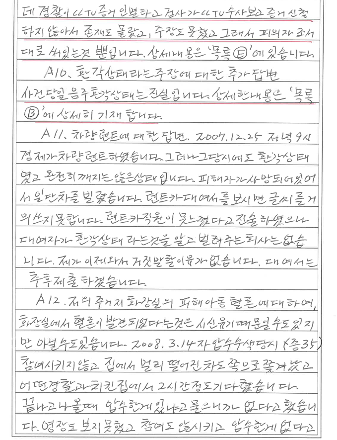 정씨는 경찰 조사에서 “대리운전 영업을 했다”고 진술했다가 이후 조사에서는 “대리운전을 하려다 집에 있었다”고 진술을 번복했다. 대리운전 업체 확인 결과, 해당 날짜에 정씨의 운행 기록은 없었던 것으로 나타났다.