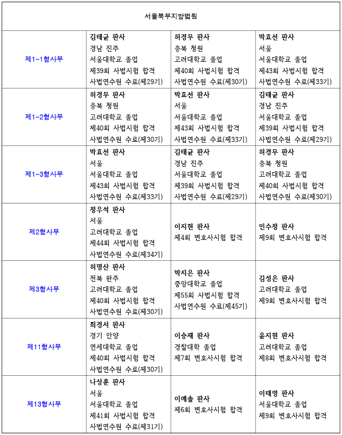 26년 서울북부지방법원 재판부 편성