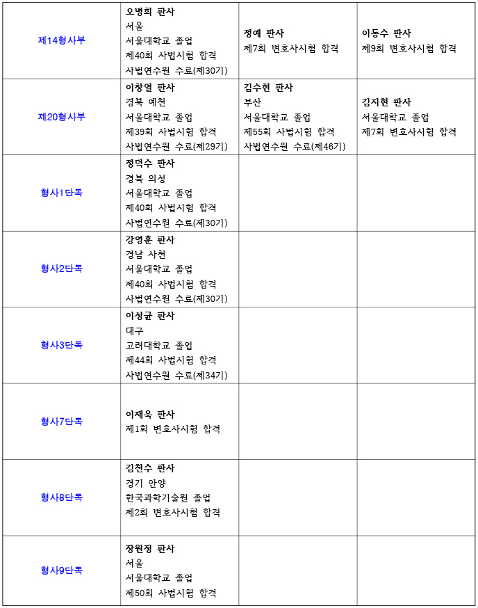 서울고등법원 재판부 편성
