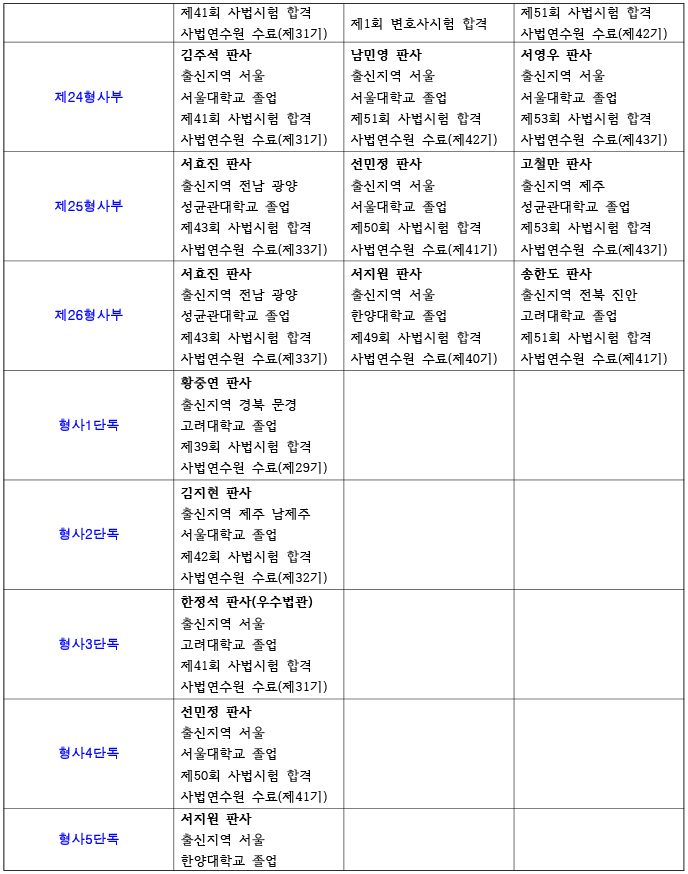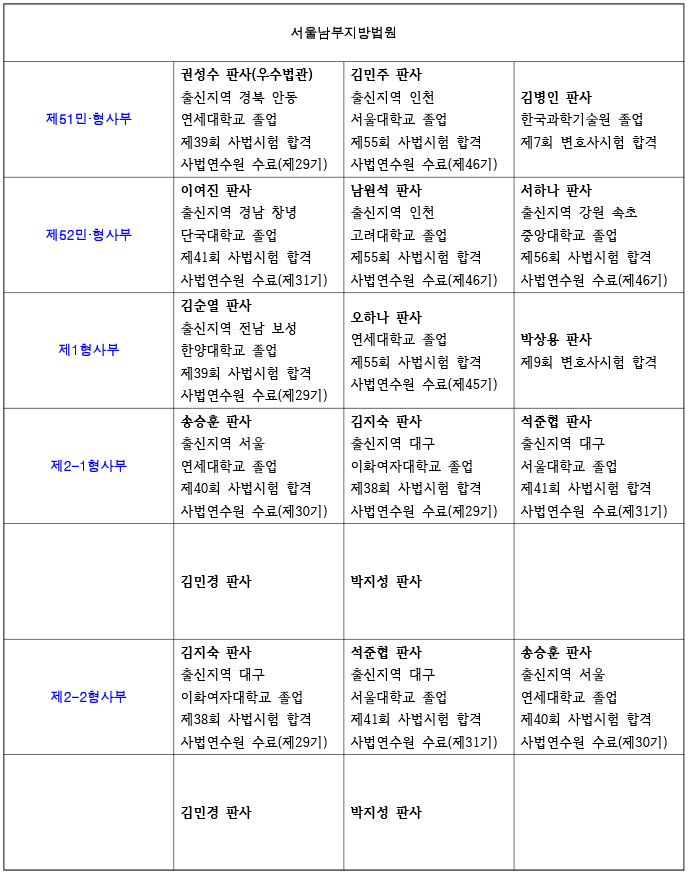 26년 서울남부지방법원 재판부 편성