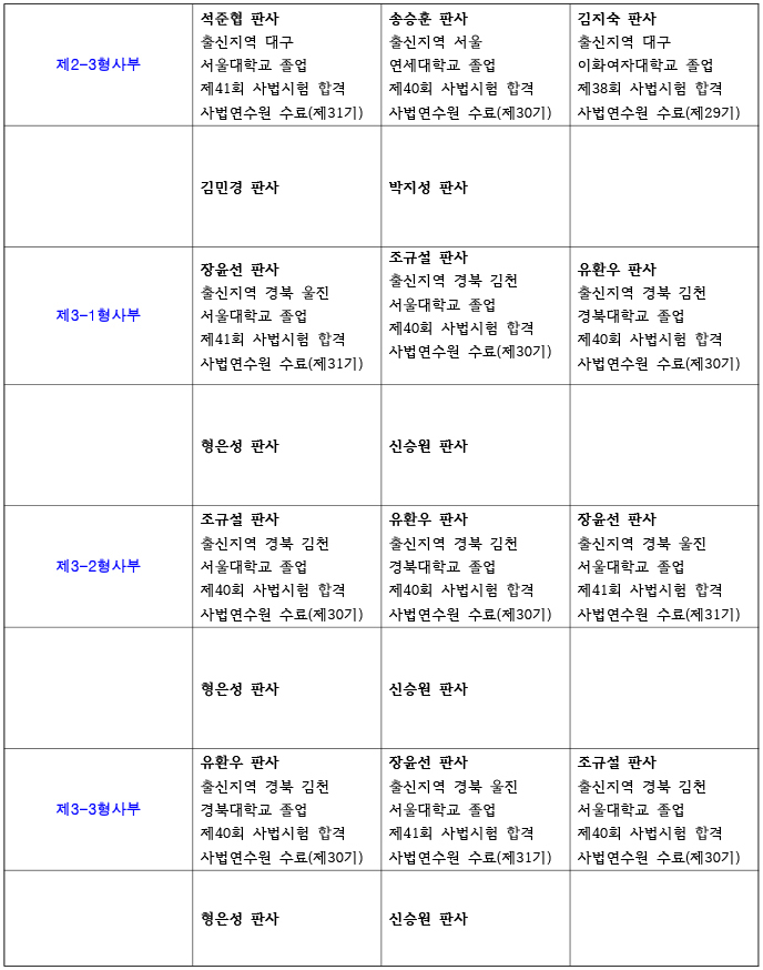 26년 서울동부지방법원 재판부 편성