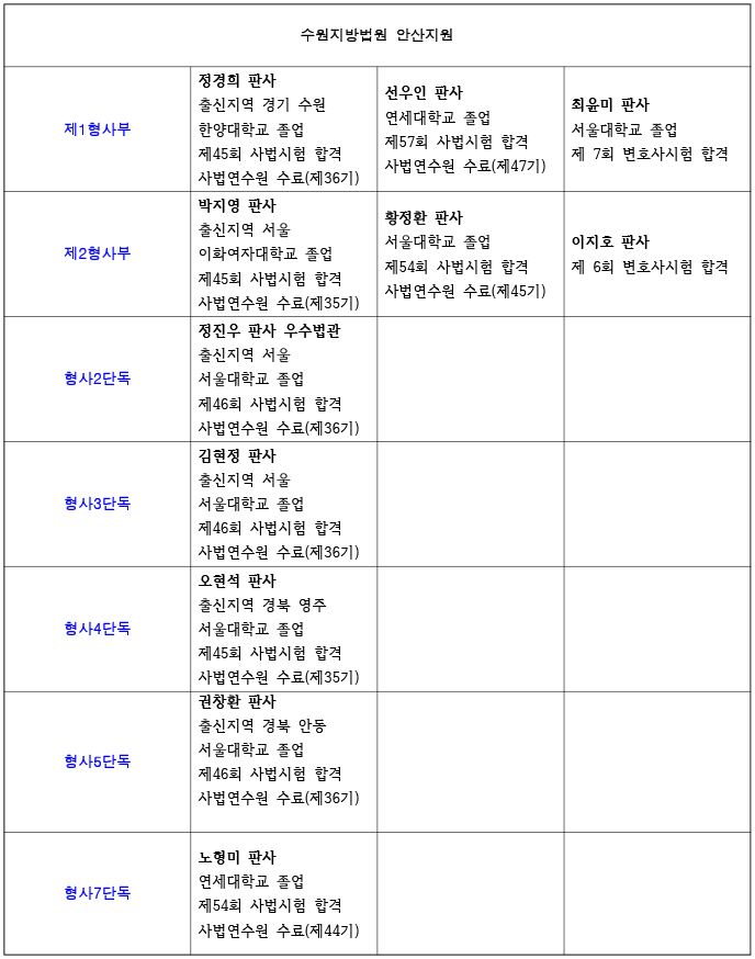 26년 수원지방법원 안산지원 재판부 편성