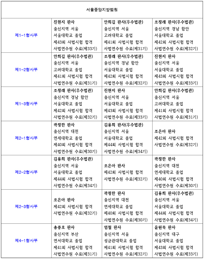 서울중앙지방법원 재판부 편성