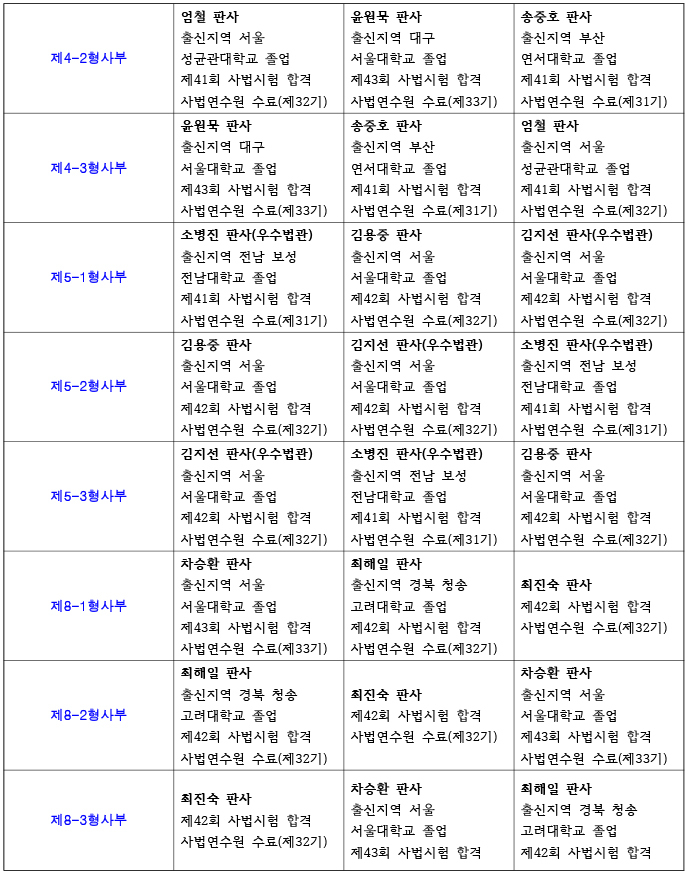 서울고등법원 재판부 편성