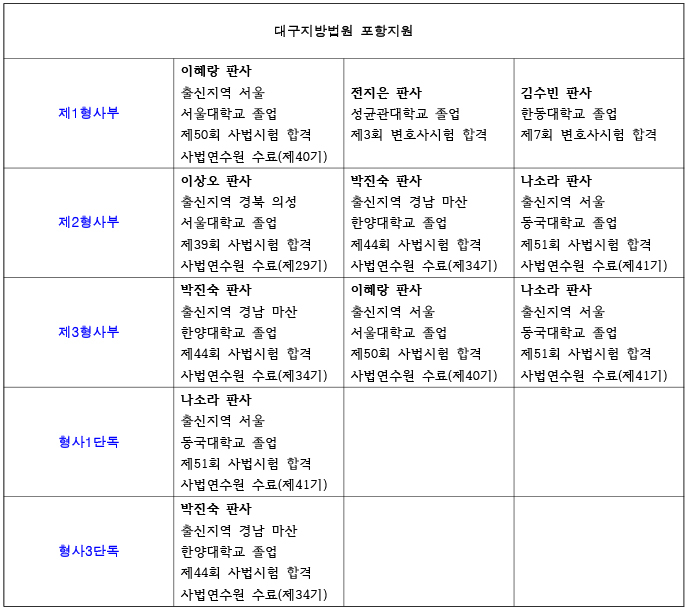 26년 대구지방법원 포항지원 재판부 편성