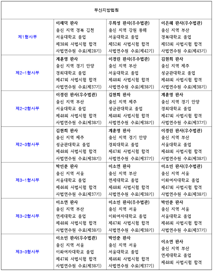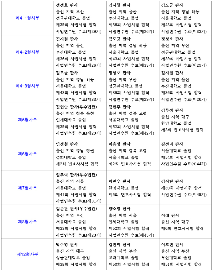 부산 고등법원 재판부 편성