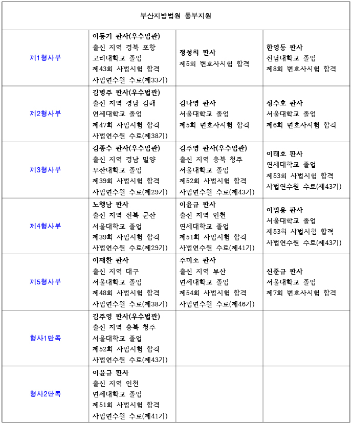 26년 부산지방법원 동부지원 재판부 편성