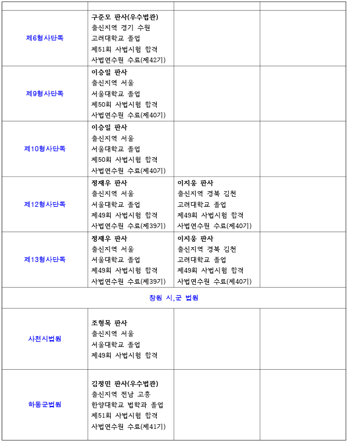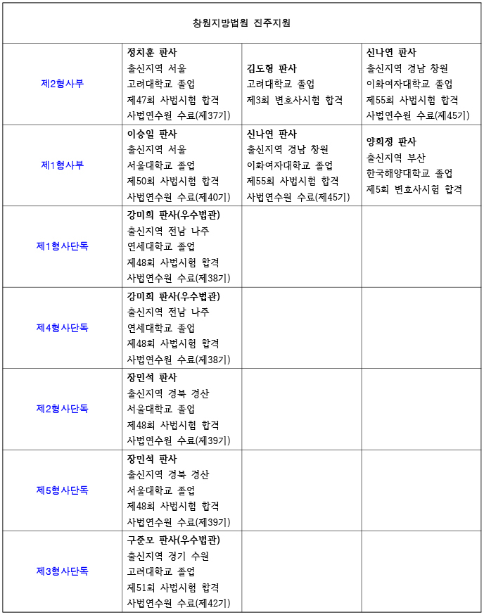 26년 창원지방법원 진주지원 재판부 편성