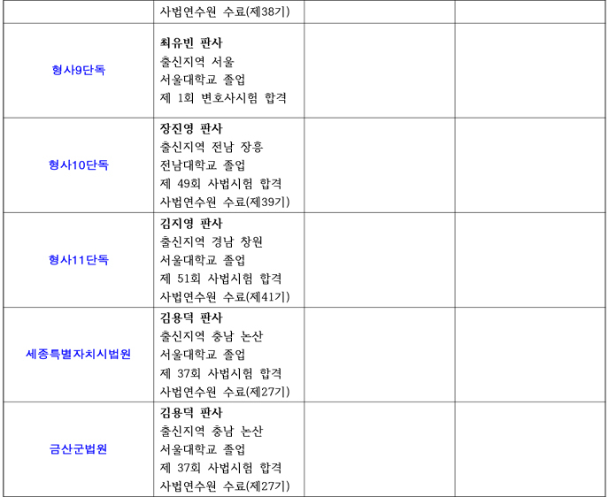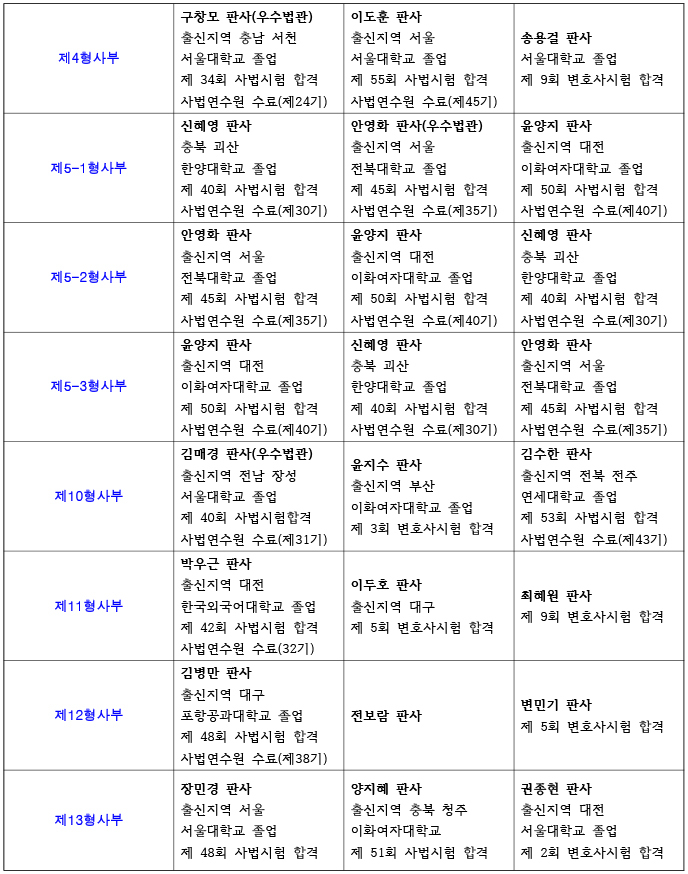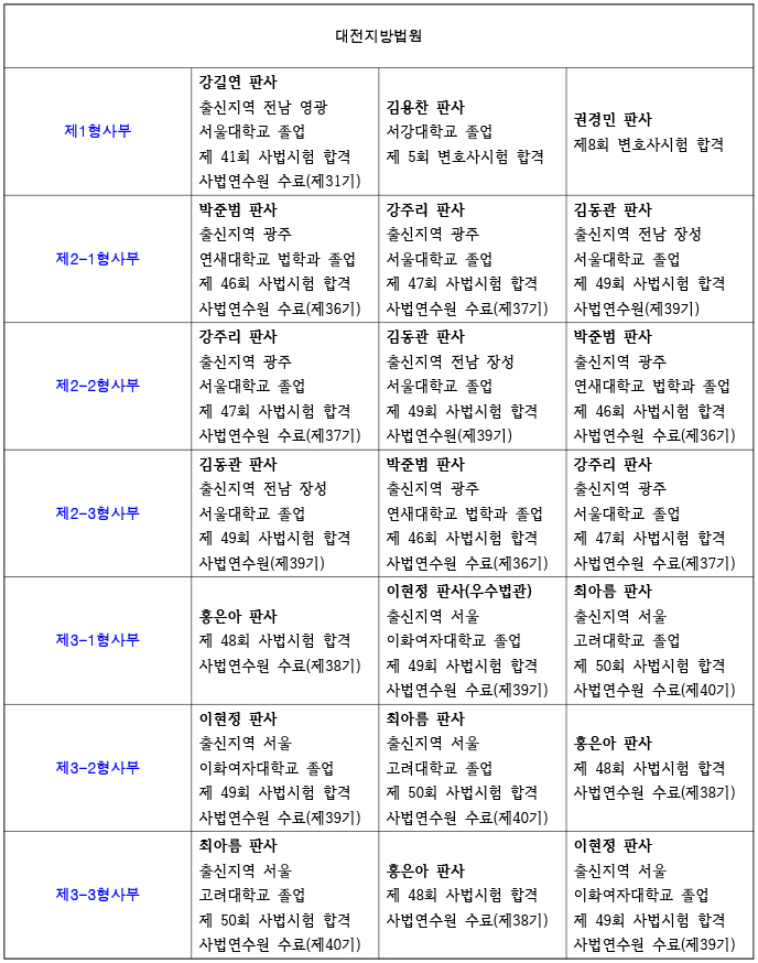 26년 대전지방법원 재판부 편성