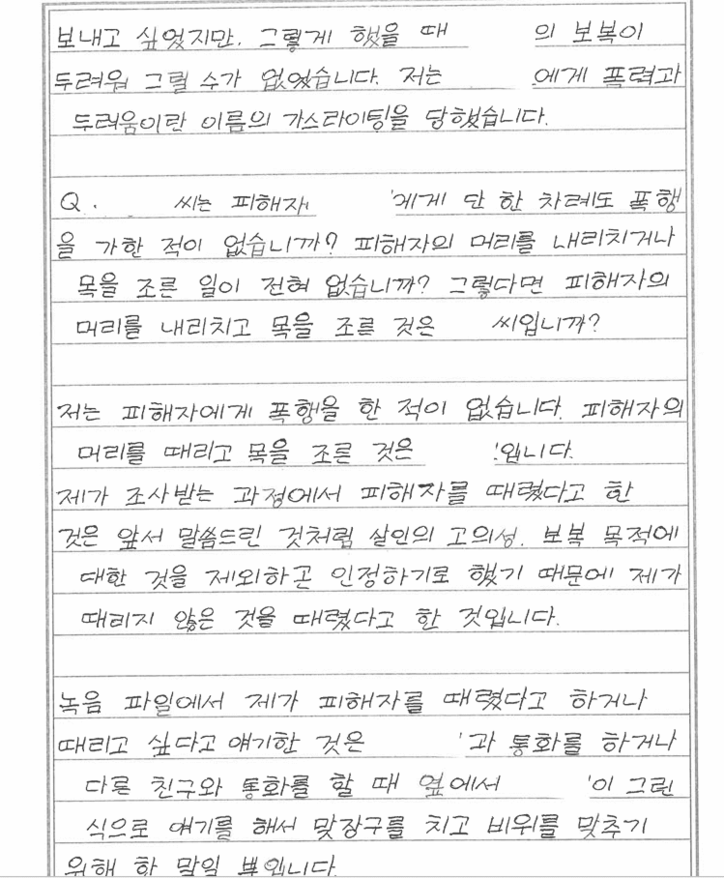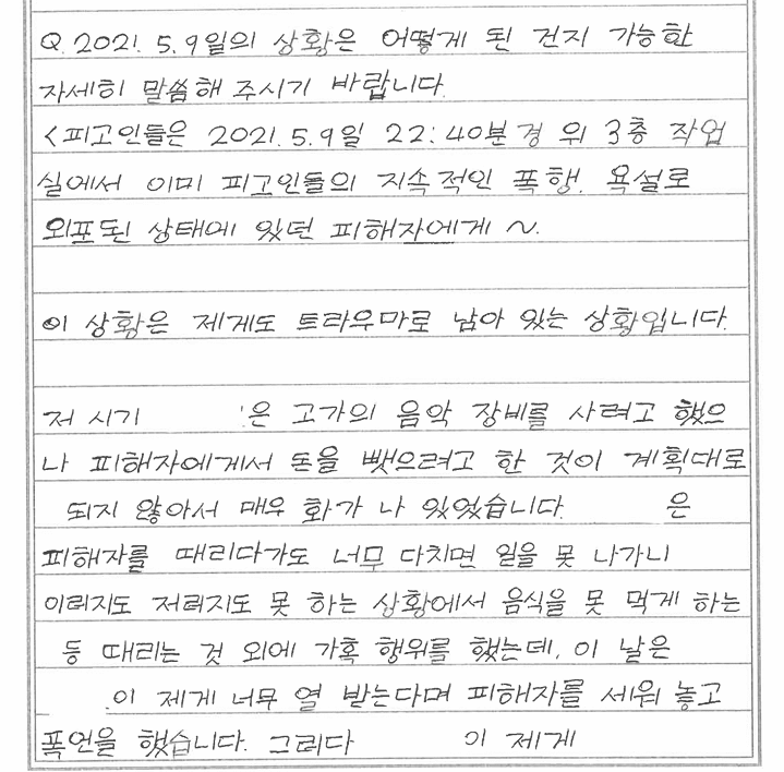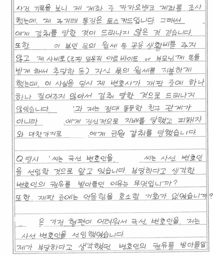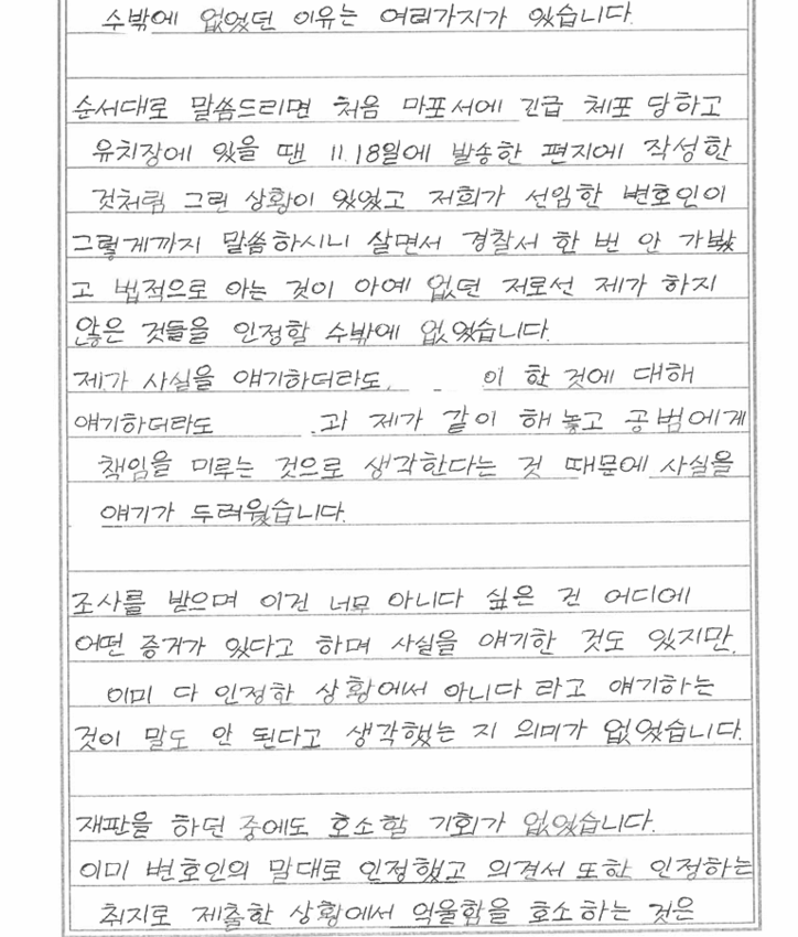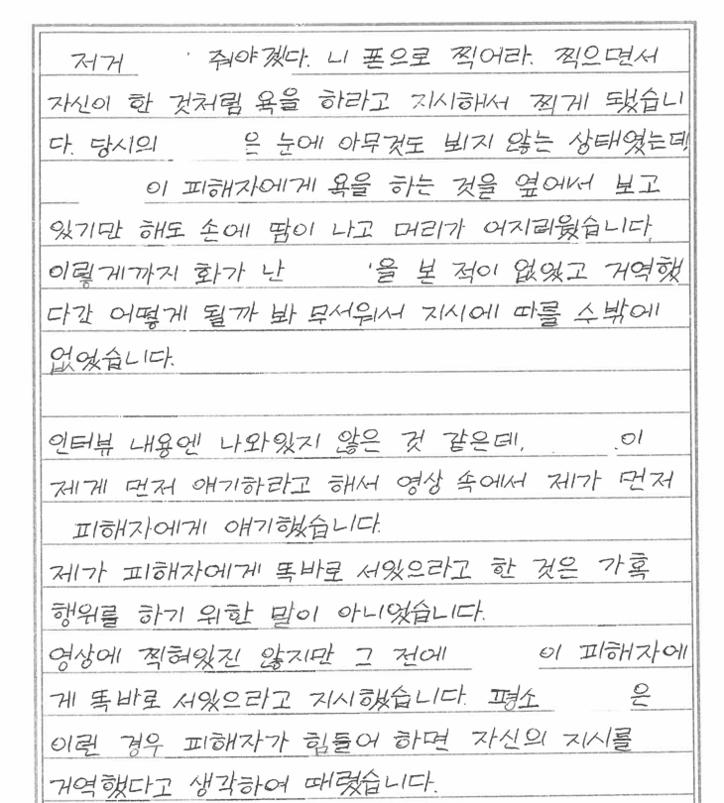안씨는 편지에서 자신이 사건의 주도자가 아니었다고 주장했다. 그는 “김씨가 오랜 기간 폭력과 갈취를 일삼았고 그 영향력에서 벗어나기 어려웠다”며 “보복이 두려워 적극적으로 피해자를 돕거나 신고하지 못했다”고 밝혔다.